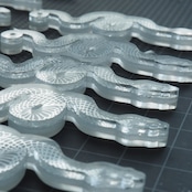 デザインからアクリル板の裁断、彫刻、染色などの加工まで自身で行なっております。