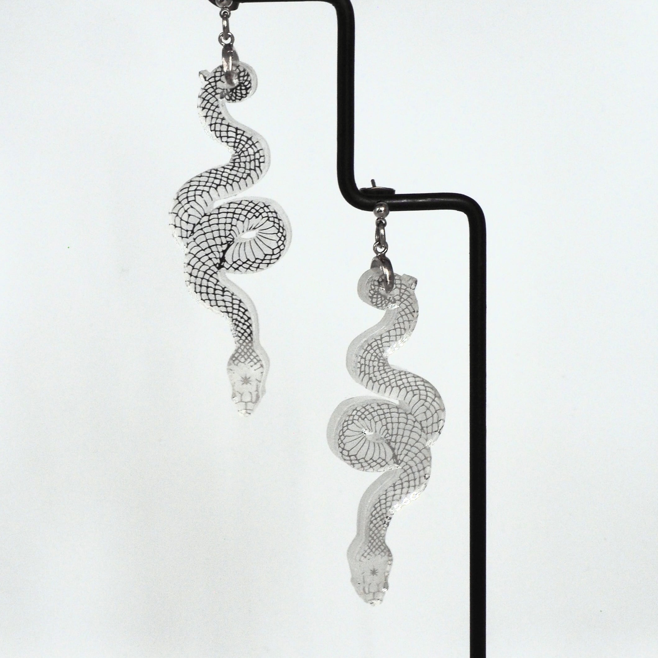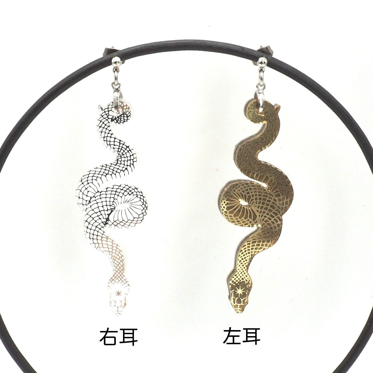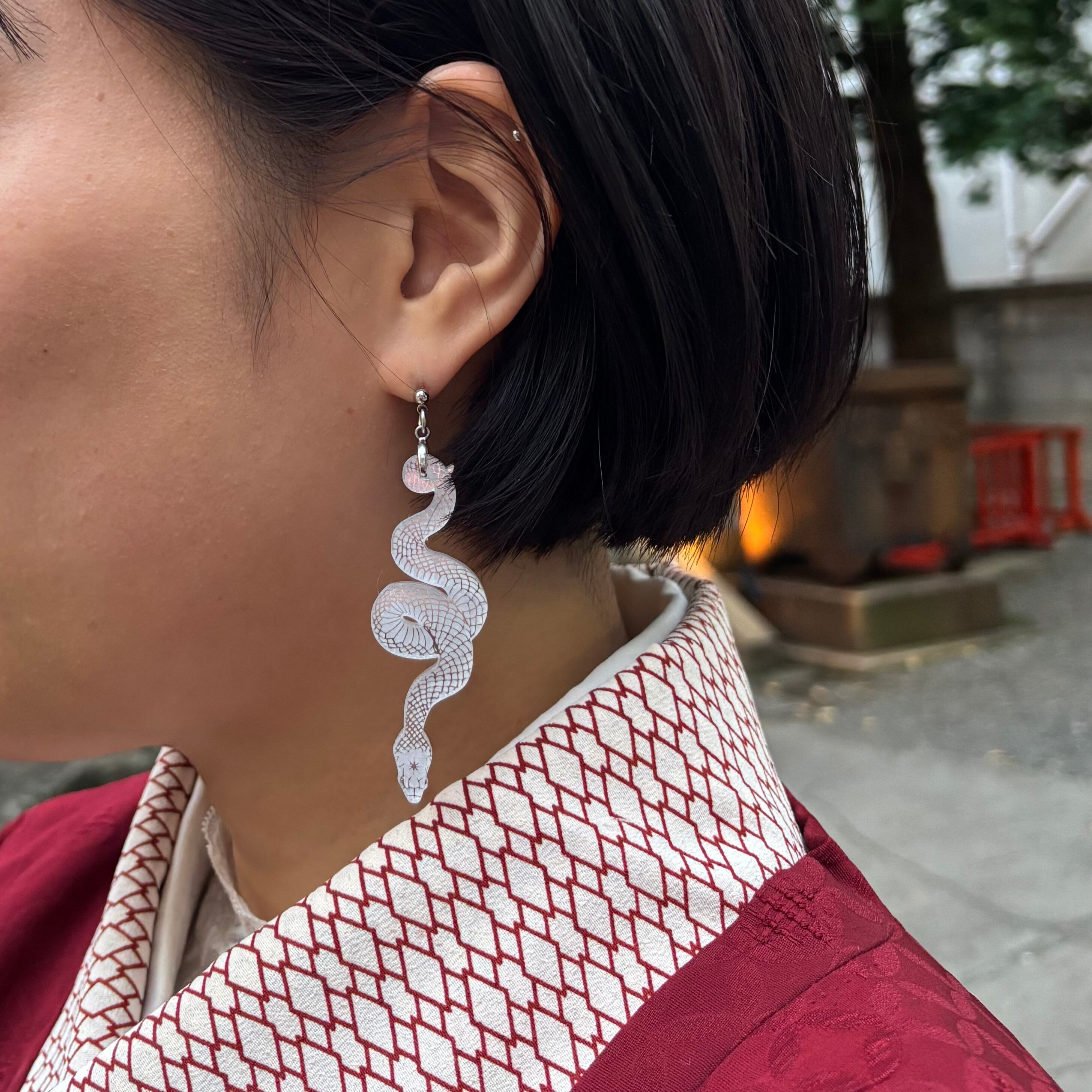 今年の干支、巳年の縁起の良い蛇のミラーアクリルピアス。