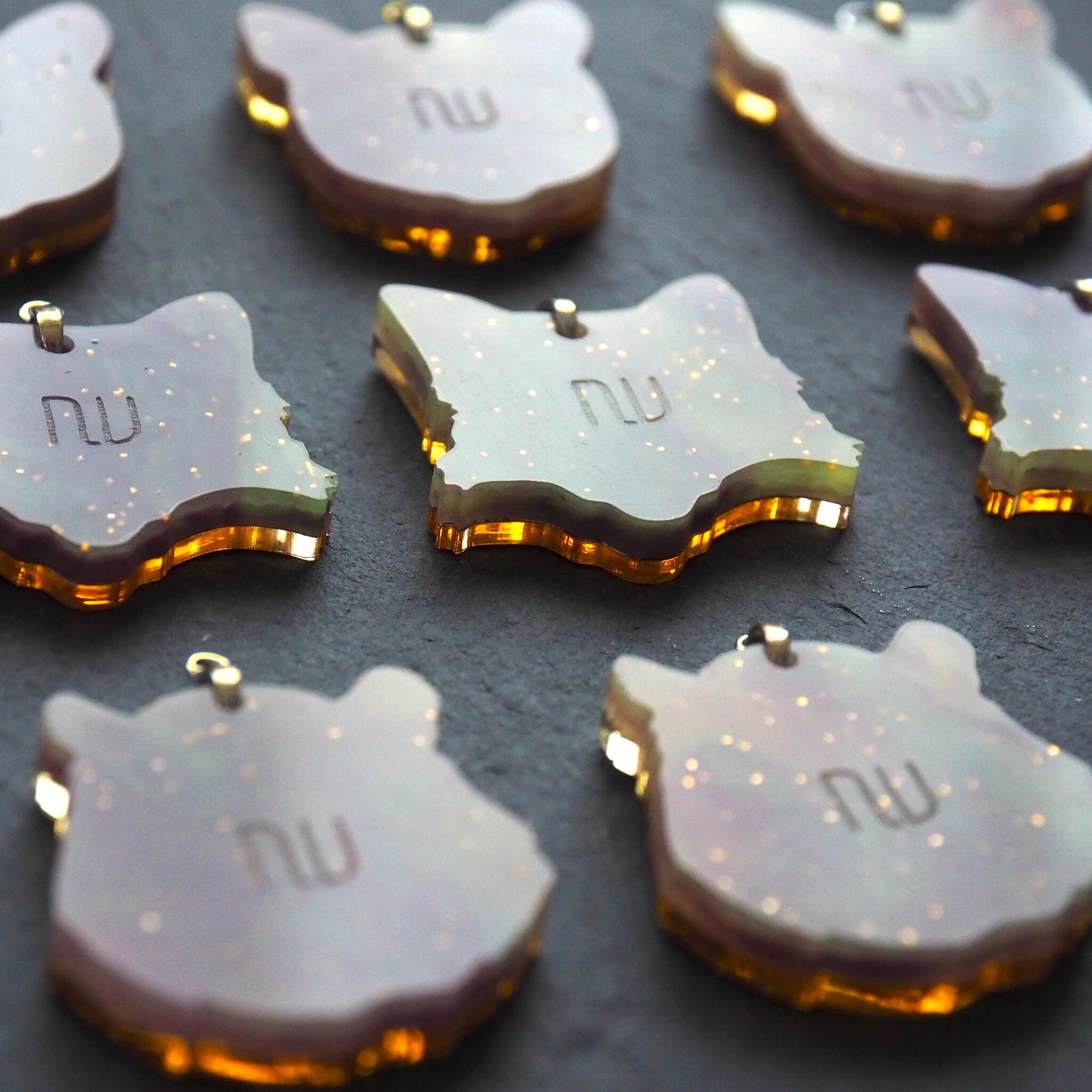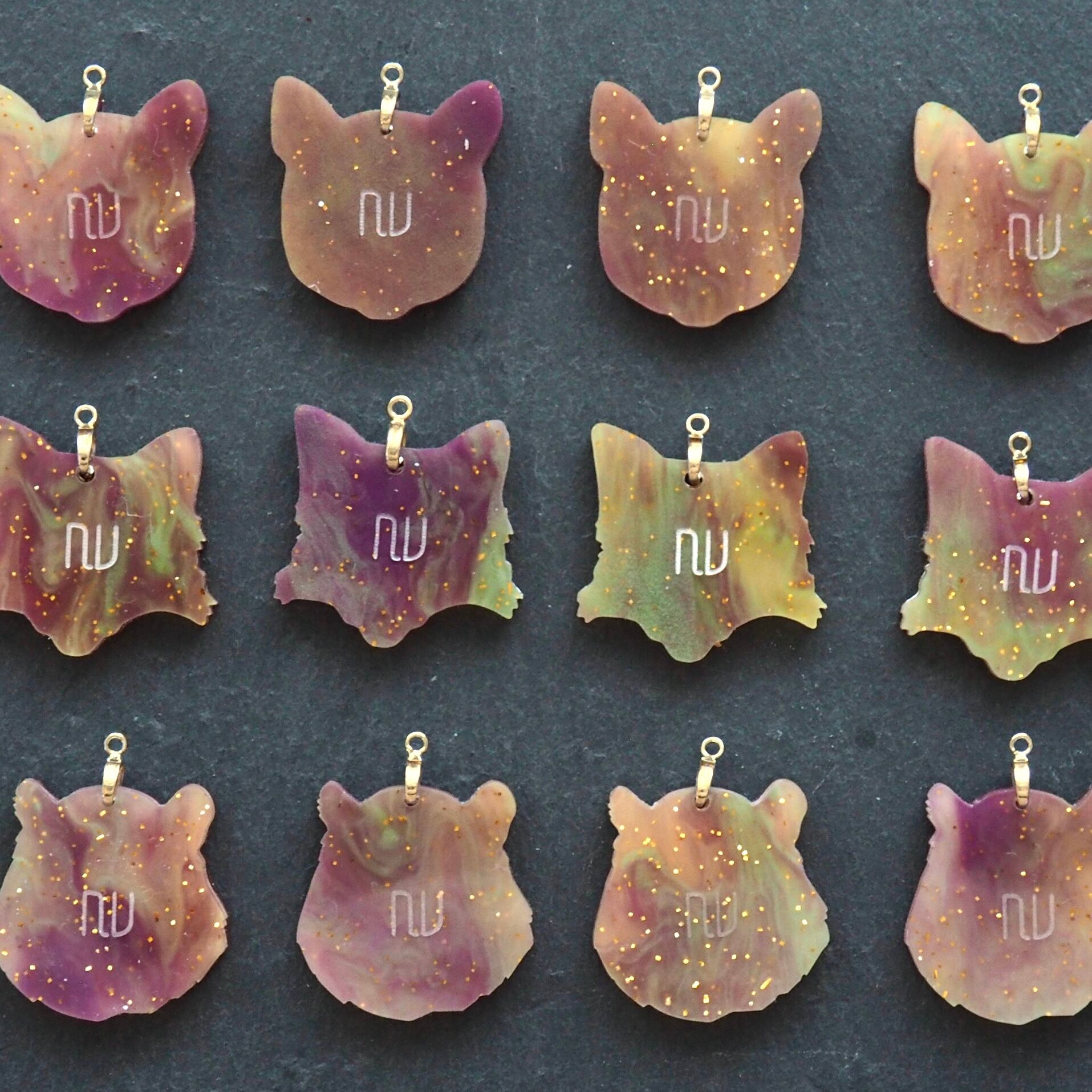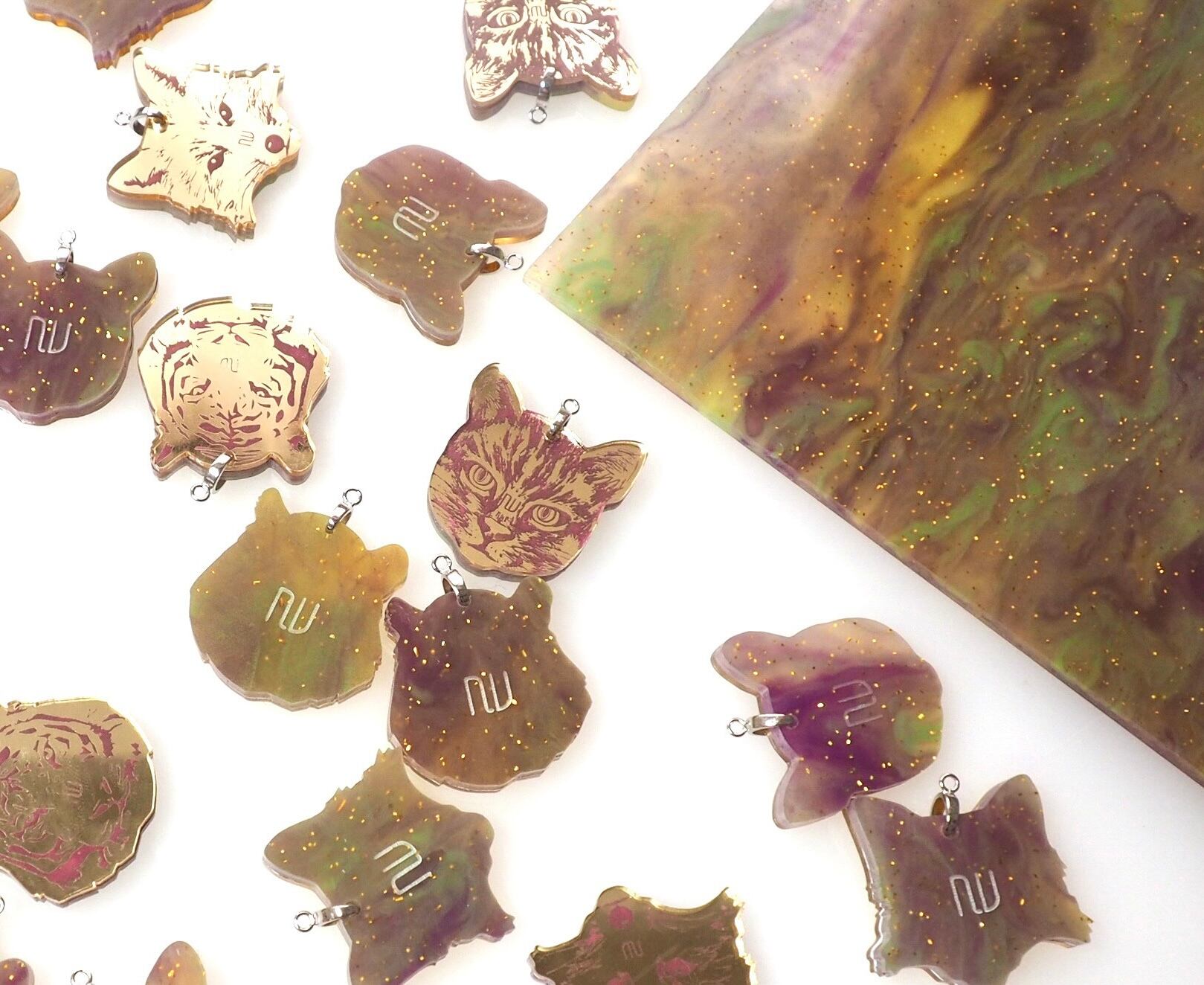 デザインからアクリル板の裁断、彫刻、染色などの加工まで自身で行なっております。