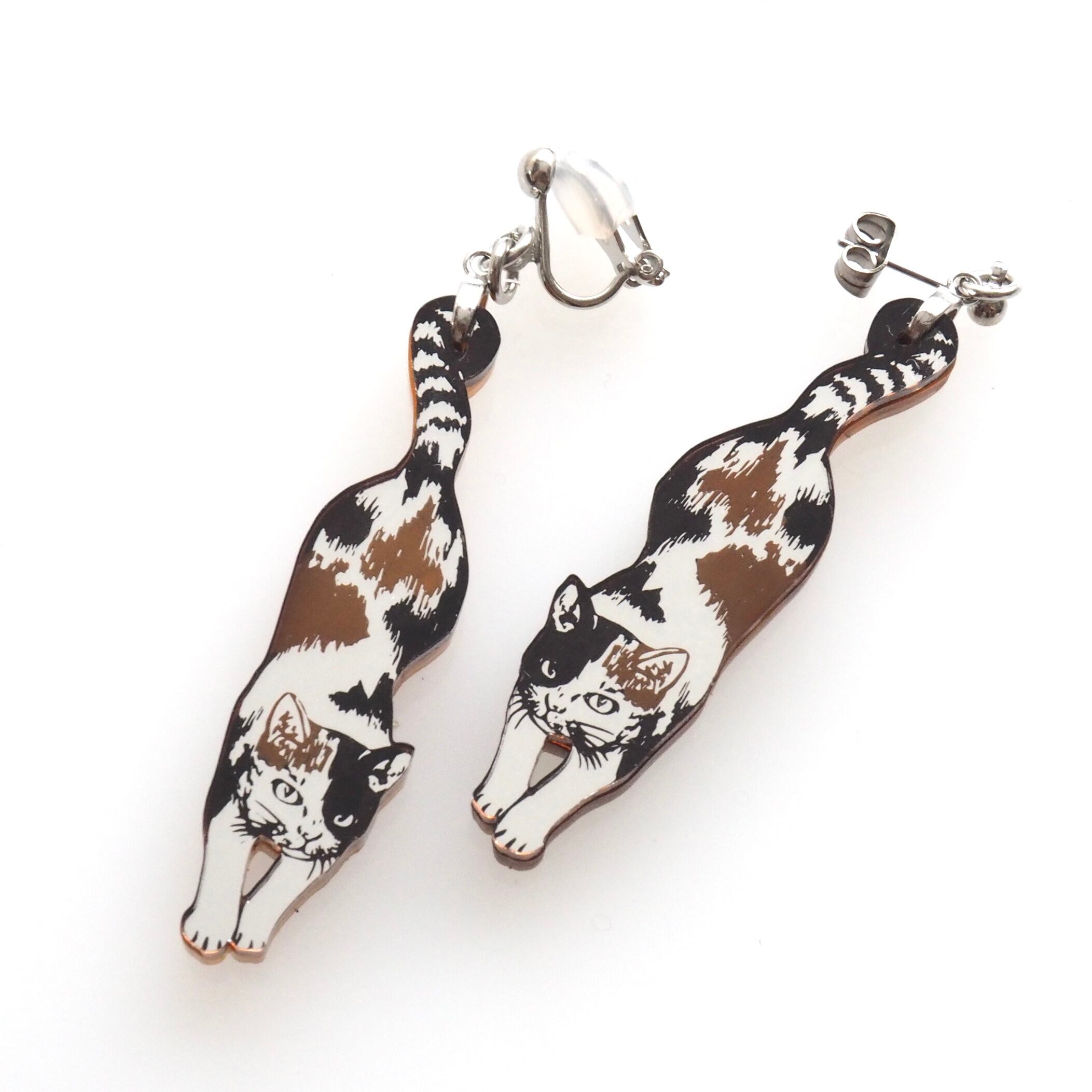 ハンギングキャットピアス【三毛猫】