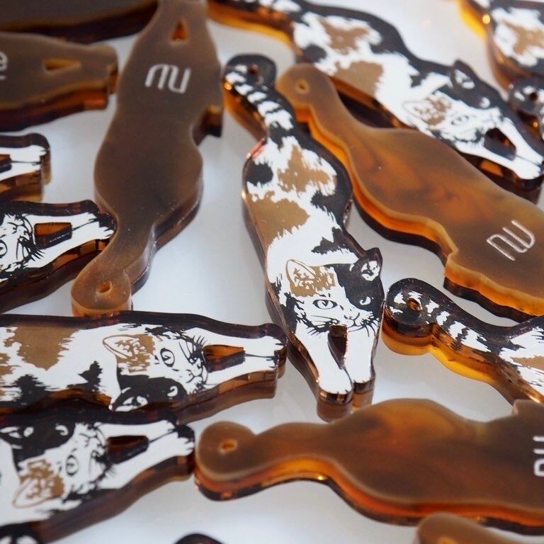 デザインからアクリル板の裁断、彫刻、染色などの加工まで自身で行なっております。