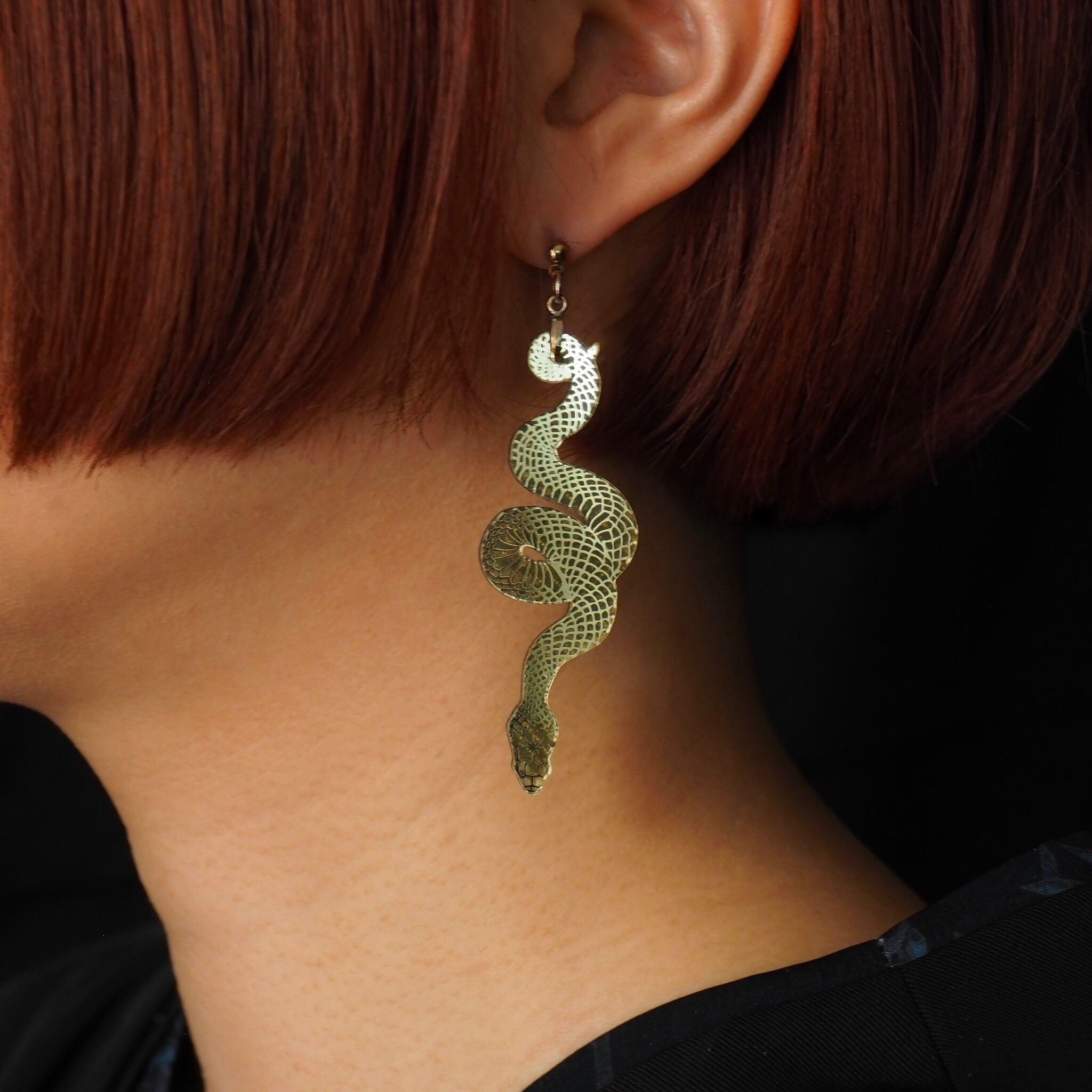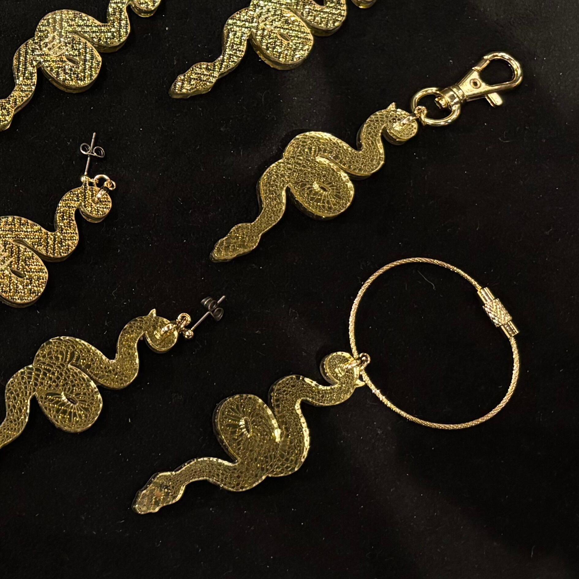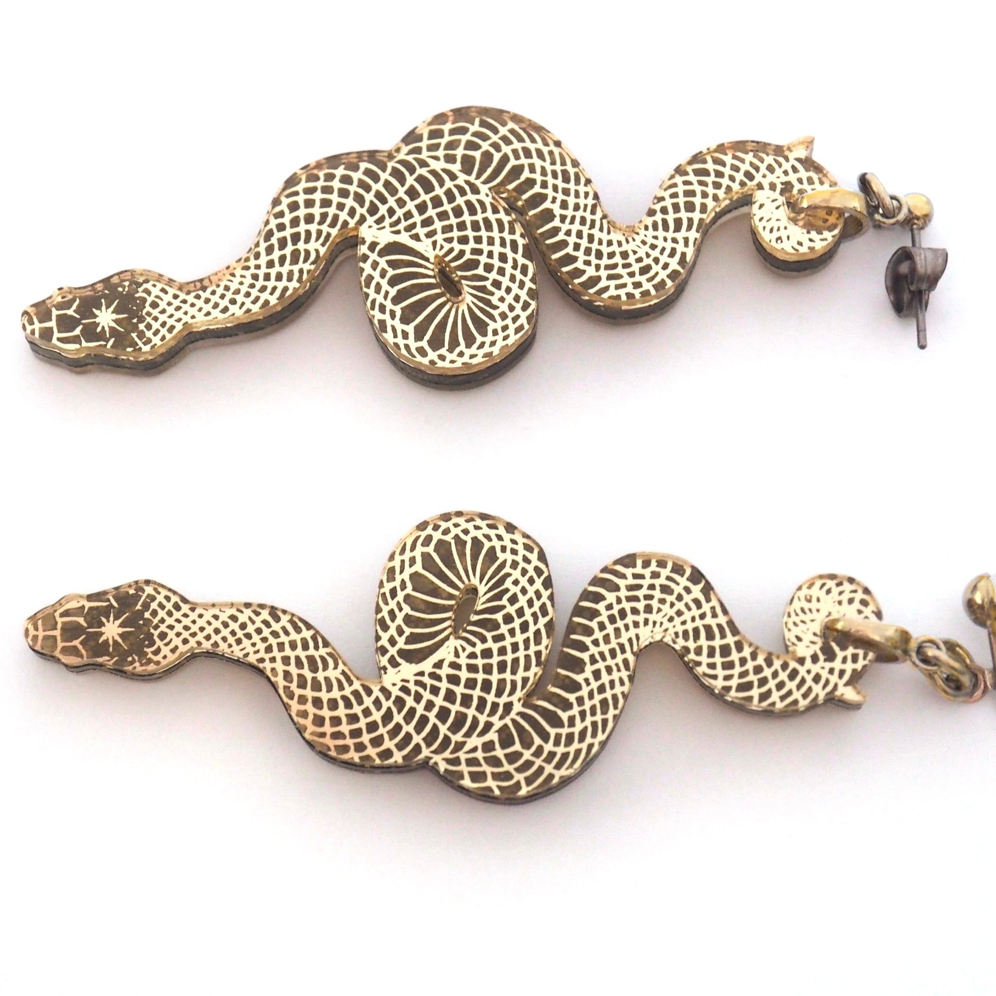 今年の干支、巳年の縁起の良い金の蛇のミラーアクリルピアス。
