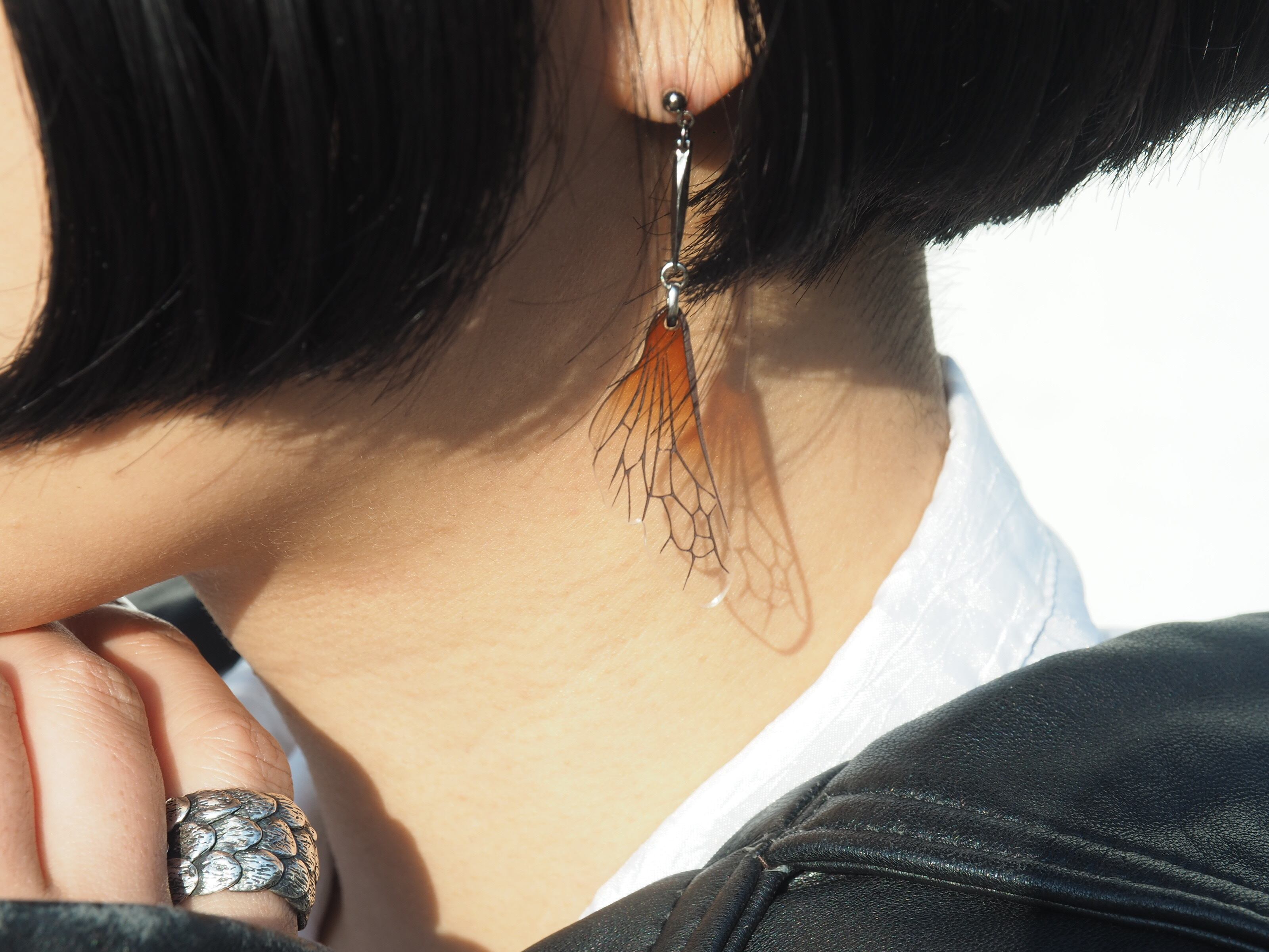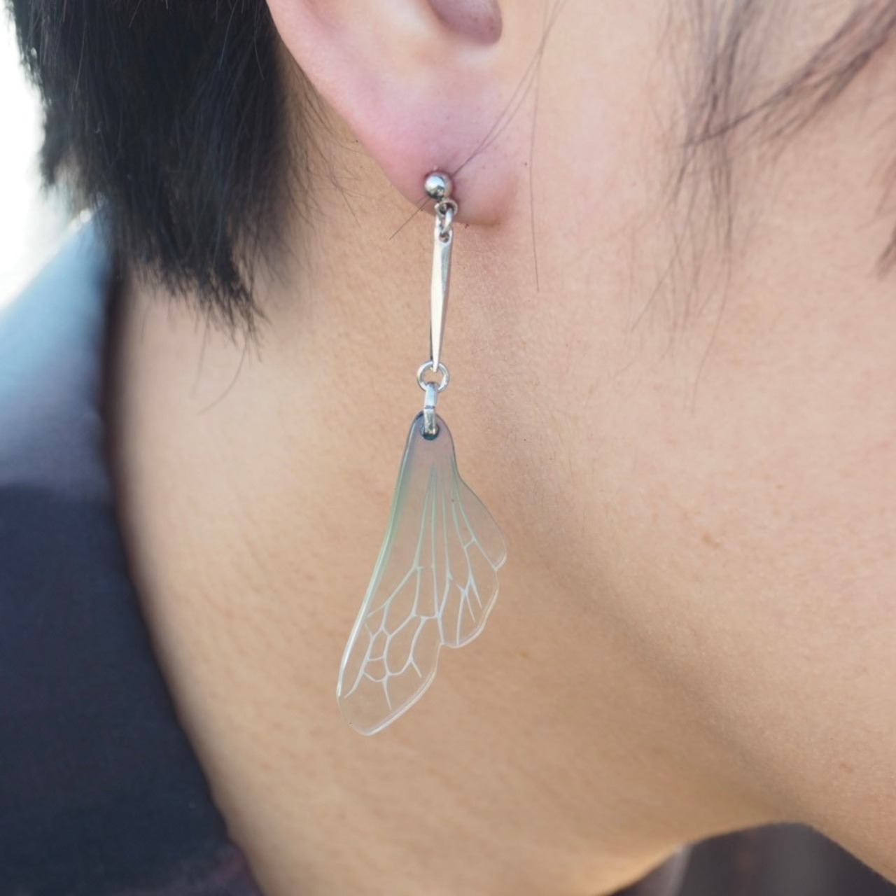 蜂の羽根をモチーフとしたピアスの片耳です。