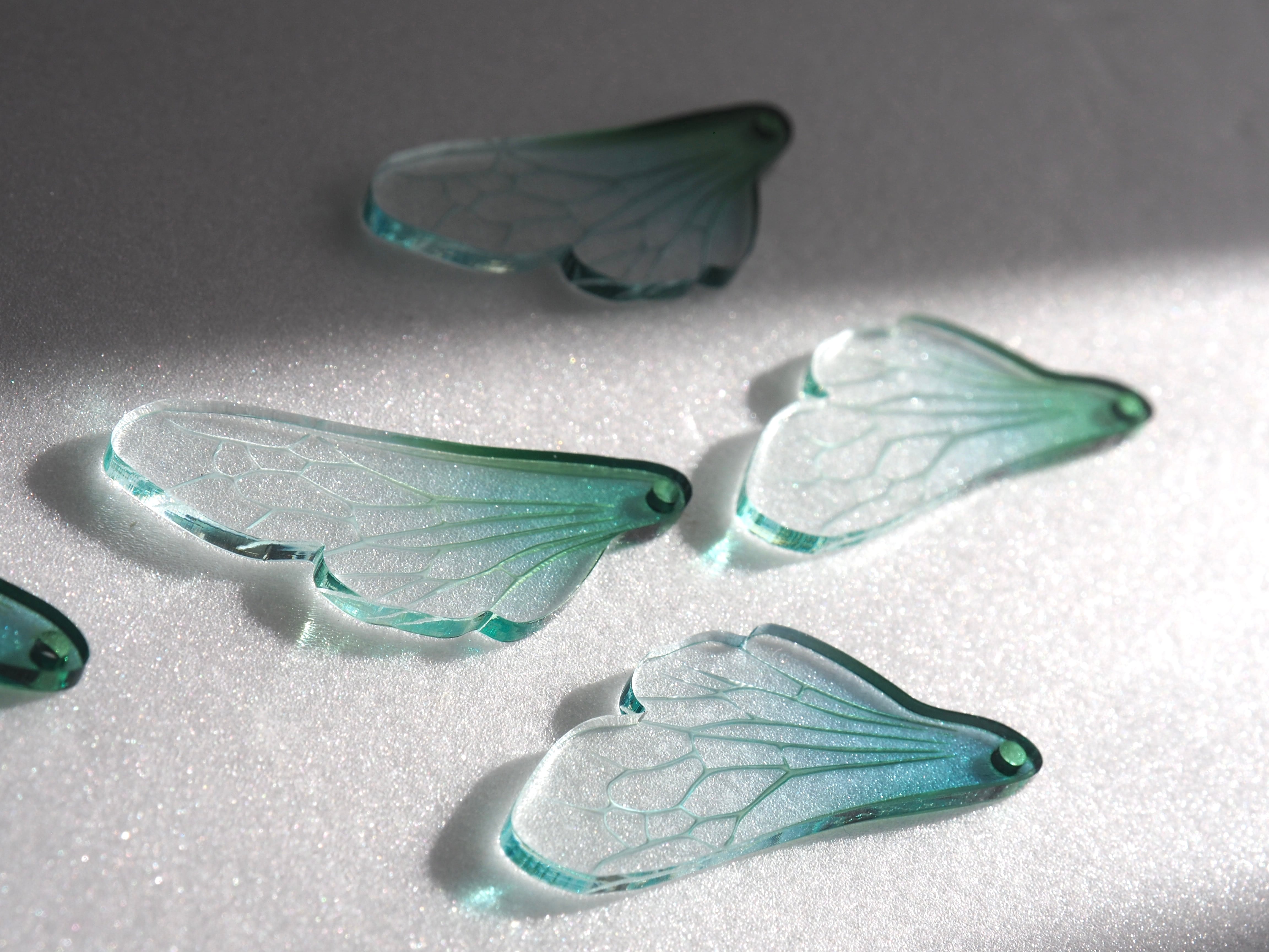 ガラスのようなブルーグリーンのアクリルに染色をしました。