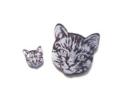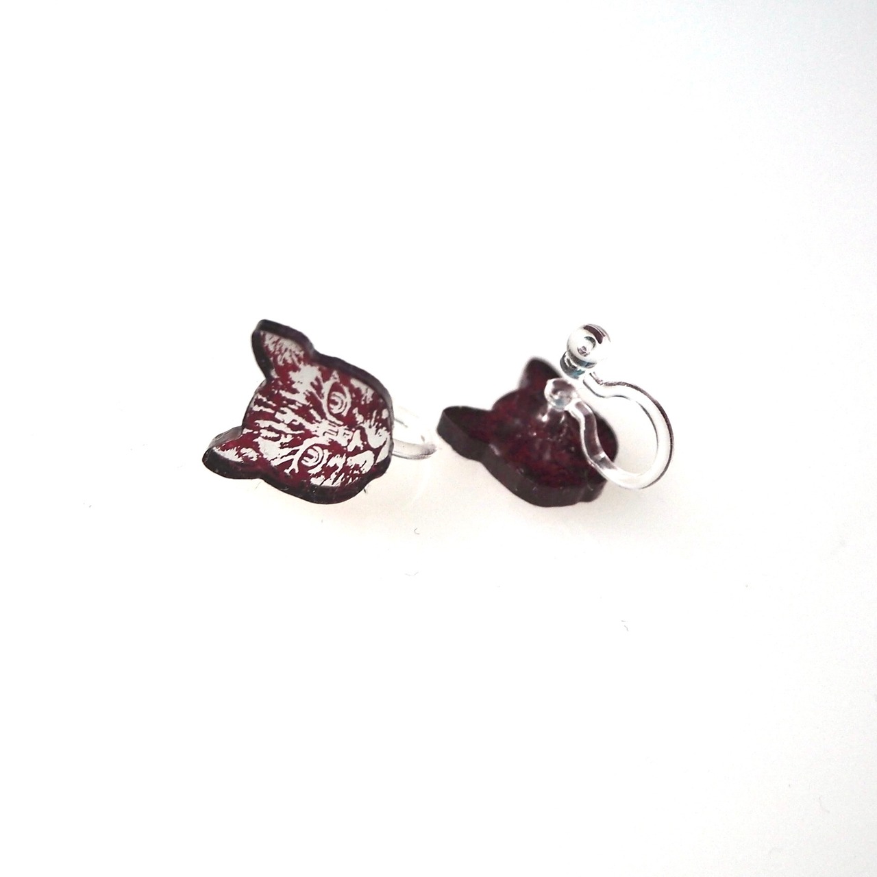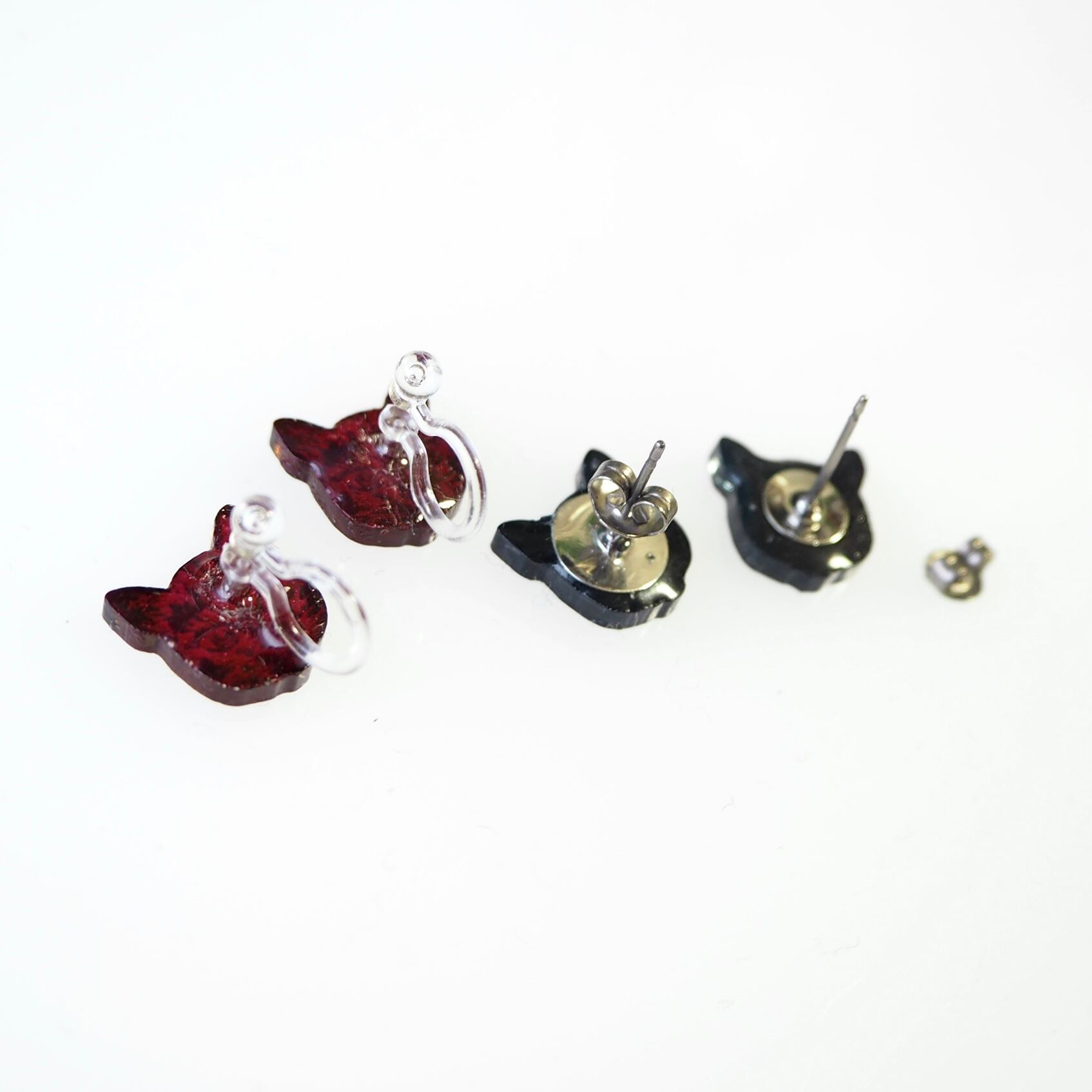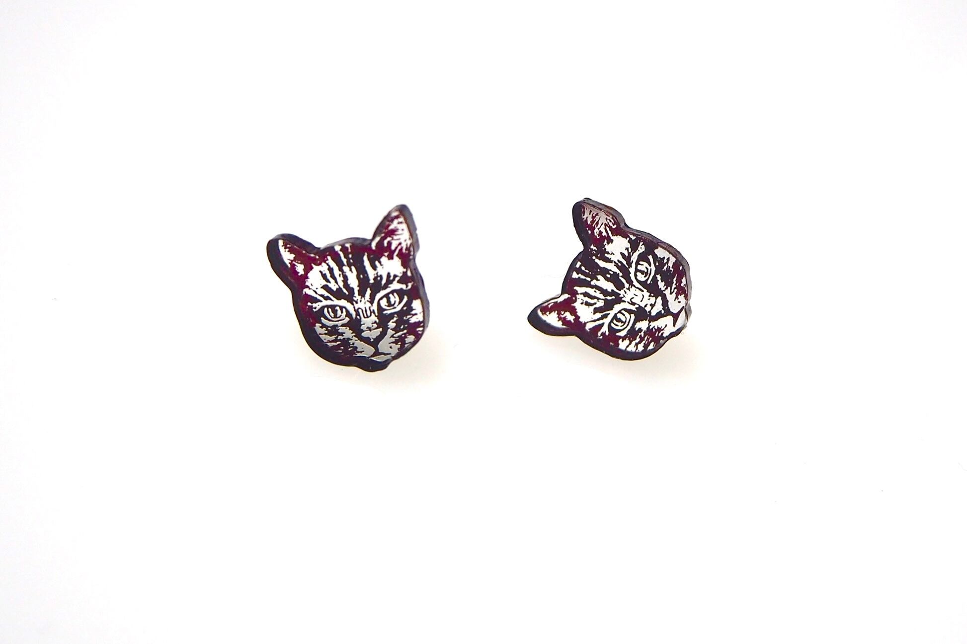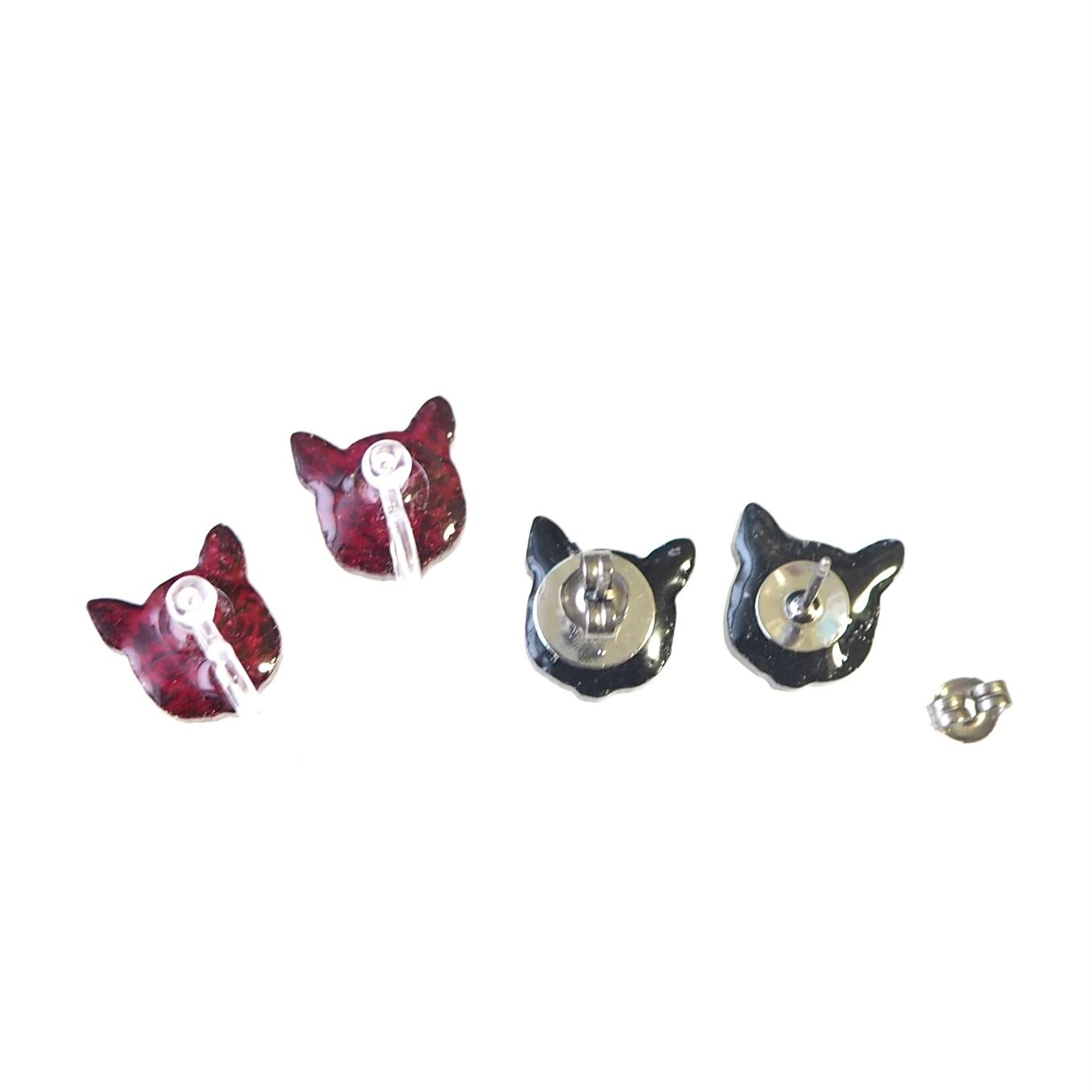 個性的なミラー調の猫の顔のスタッド(ノンホール)ピアスです。