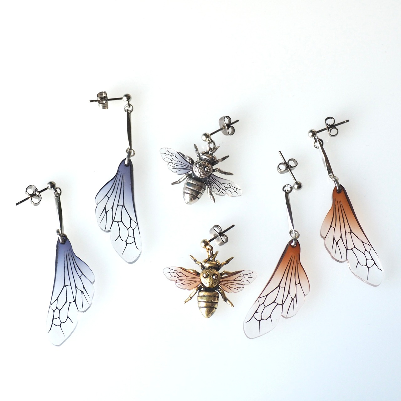 金属とアクリルの蜜蜂ピアスの羽と同色なので、一緒に着けても可愛いです。