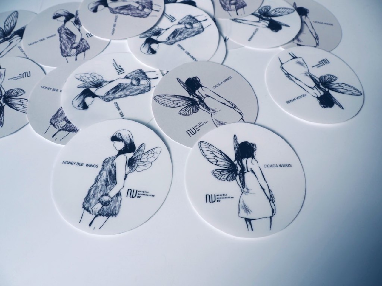デザイン、透明なアクリル板の切り出しから全て自身で製作し、染色も一つ一つ丁寧に手作業で行っています。
