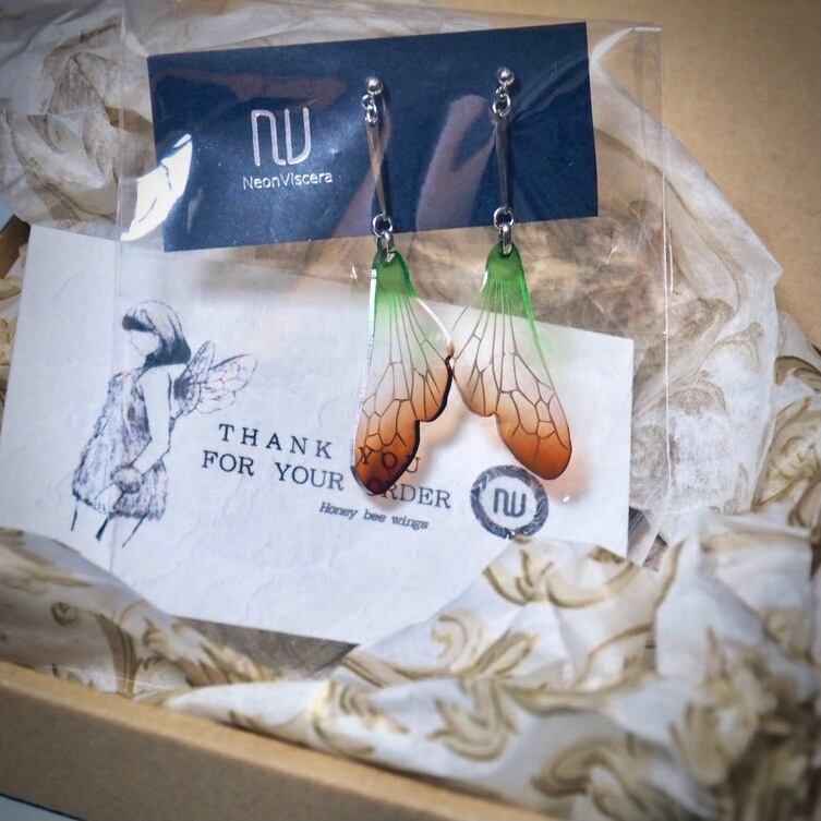 金属とアクリルの蜜蜂ピアスの羽と同色なので、一緒に着けても可愛いです。