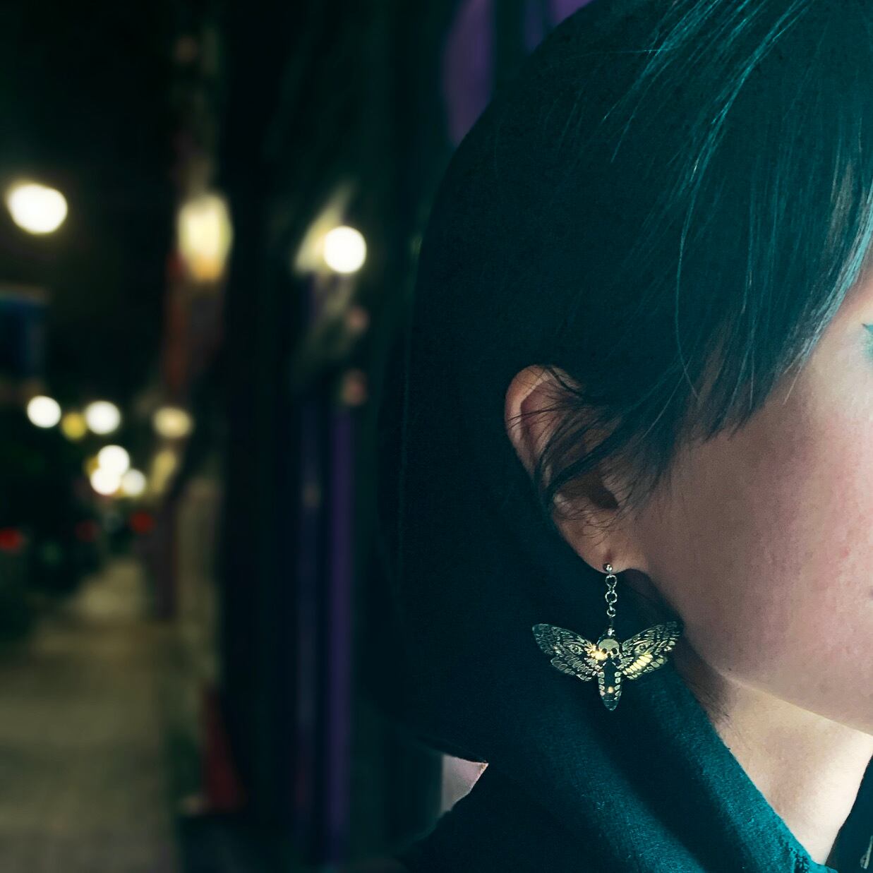メンガタスズメという背中にドクロ模様のある蛾をモチーフにデザインしました。