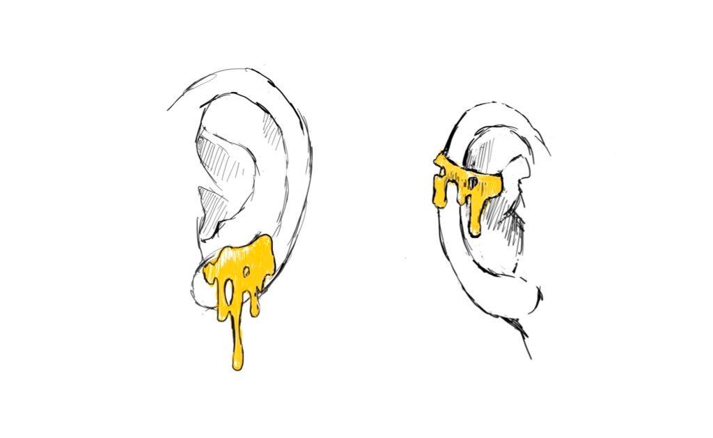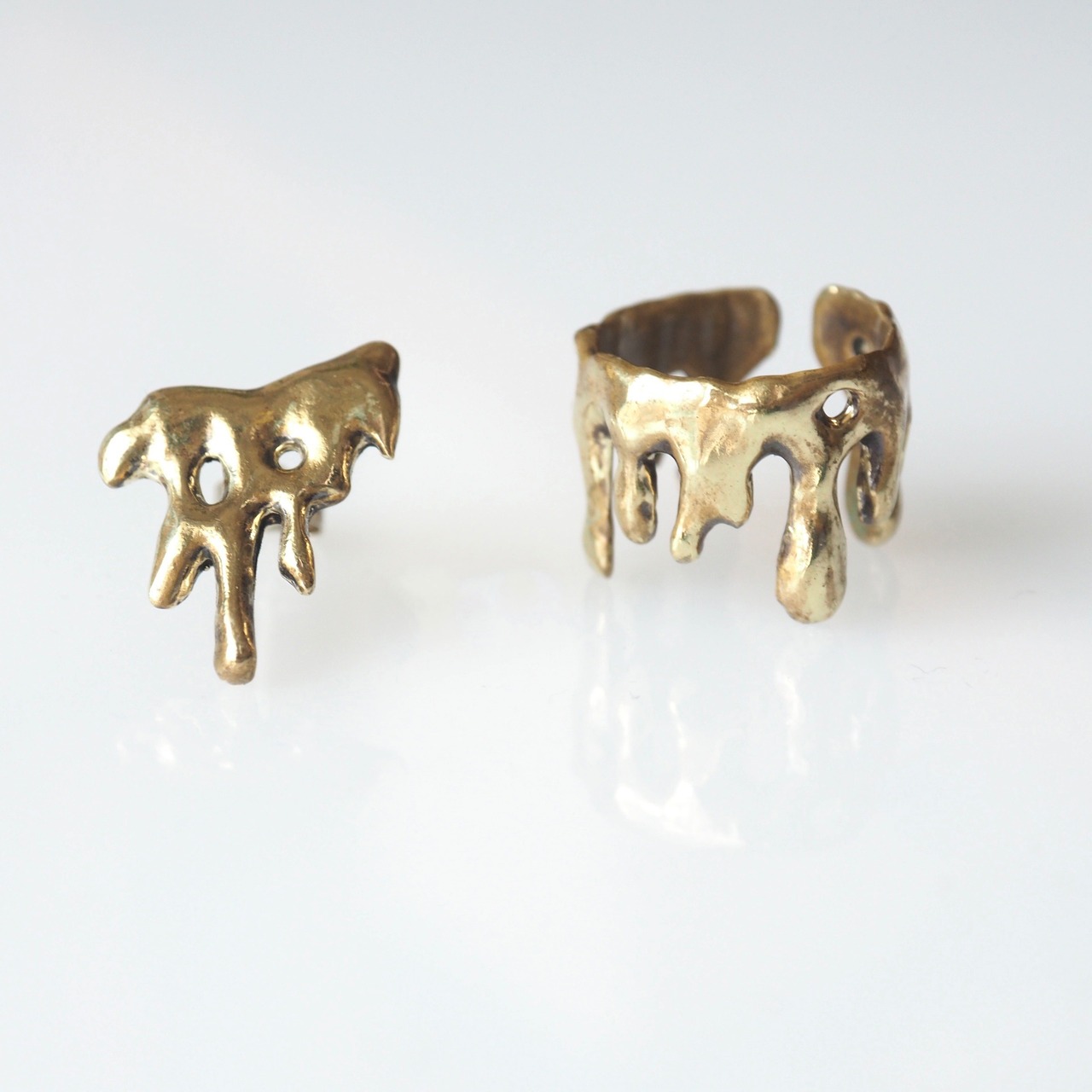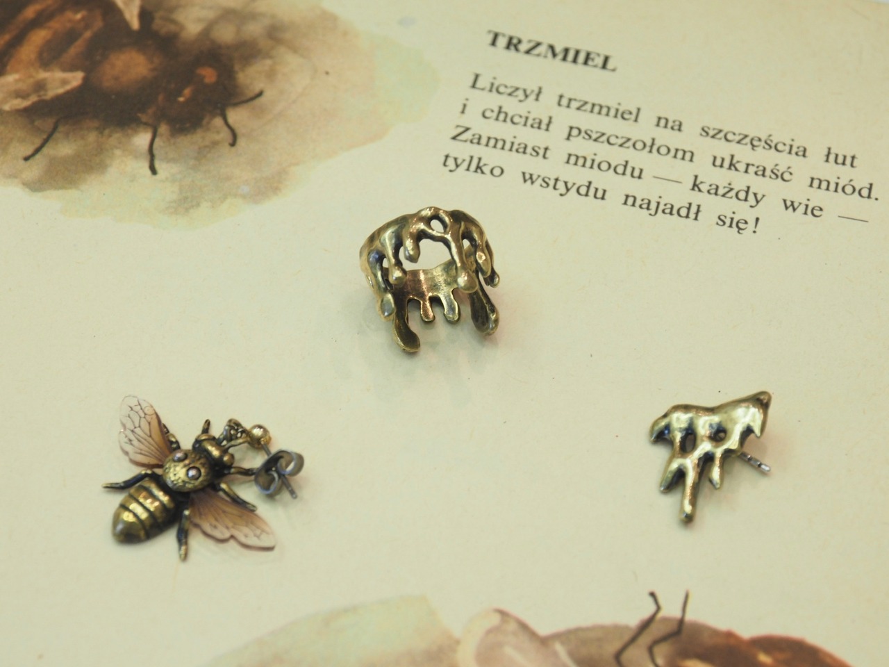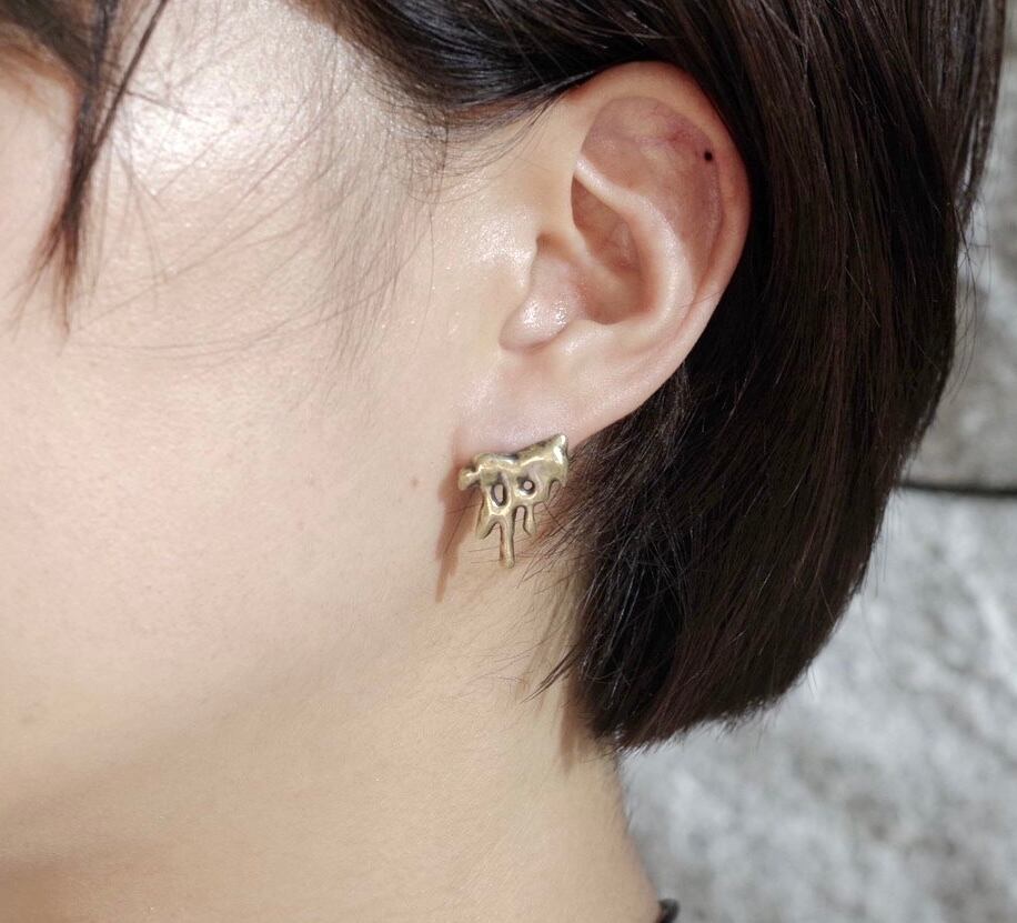 アンティークのような風合いが特徴の、滴れたハチミツをモチーフとしたピアスです。