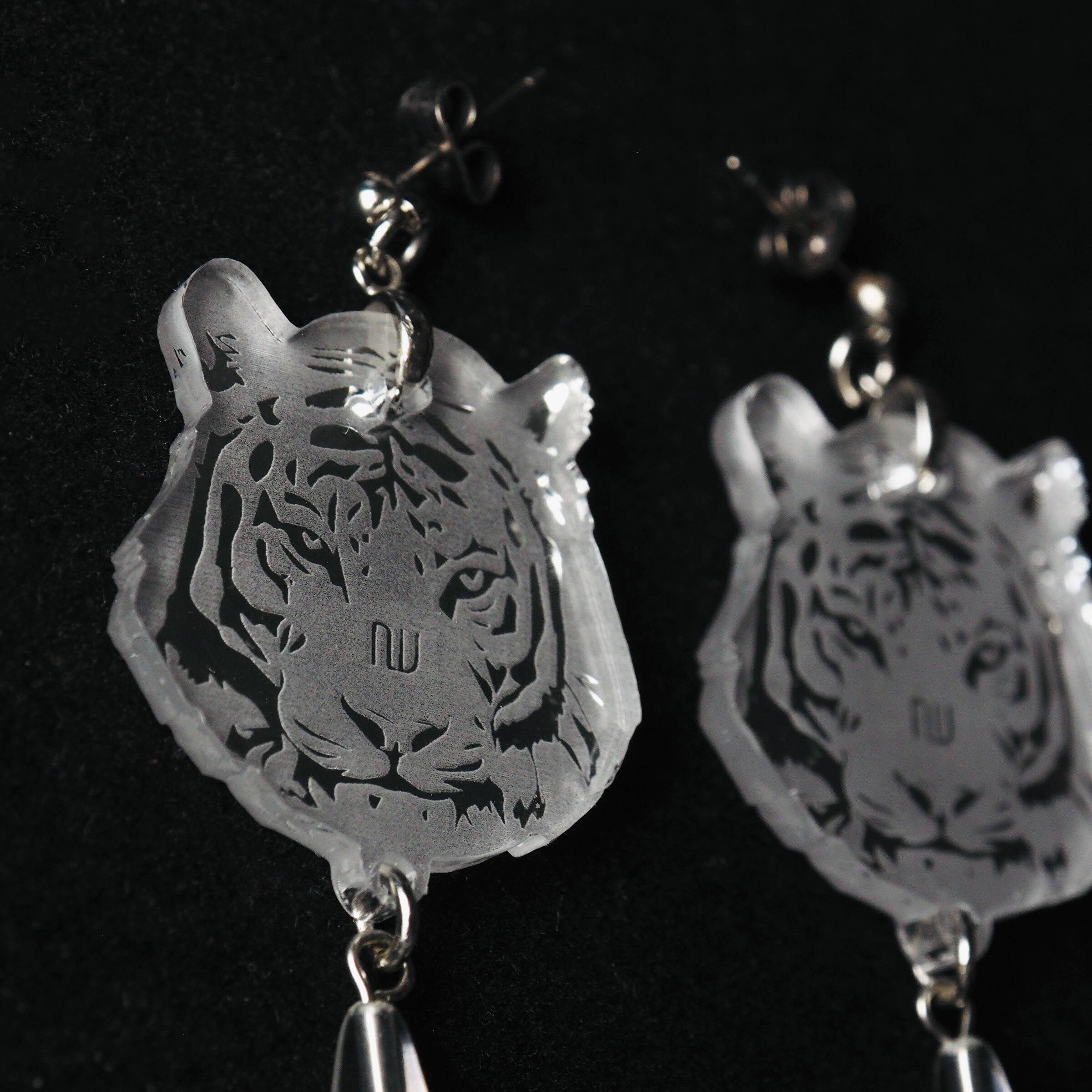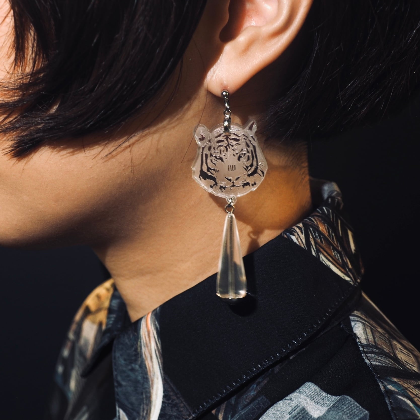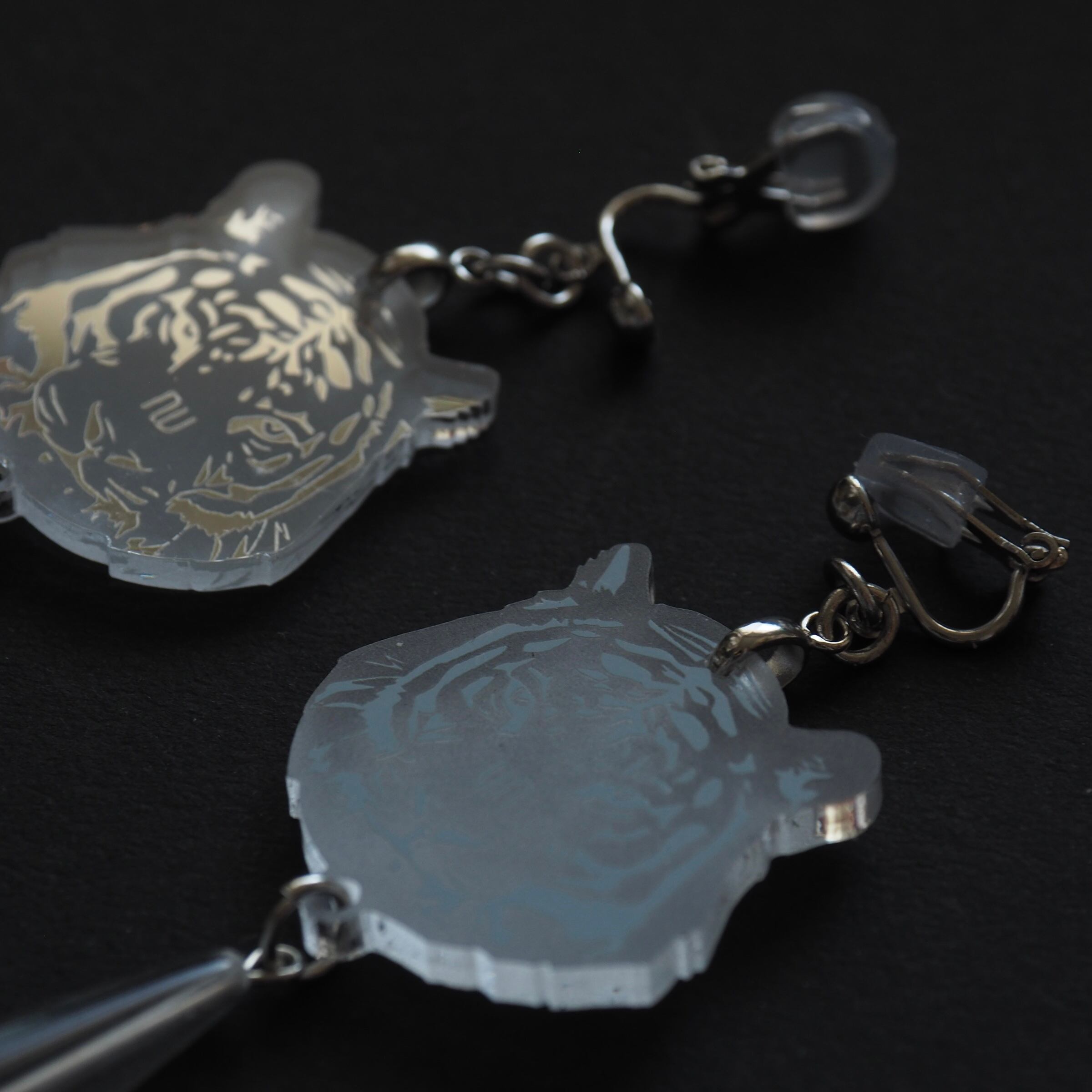すりガラスのような繊細で美しい質感のマットなアクリルを使用した、強さの中に上品な雰囲気のあるクリアタイガー。模様部がミラーになっており、光の屈折でキラッと光ります。