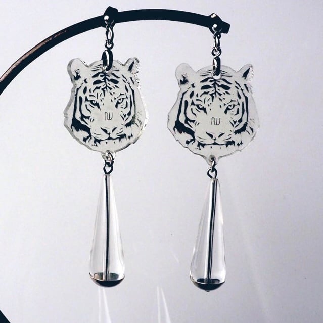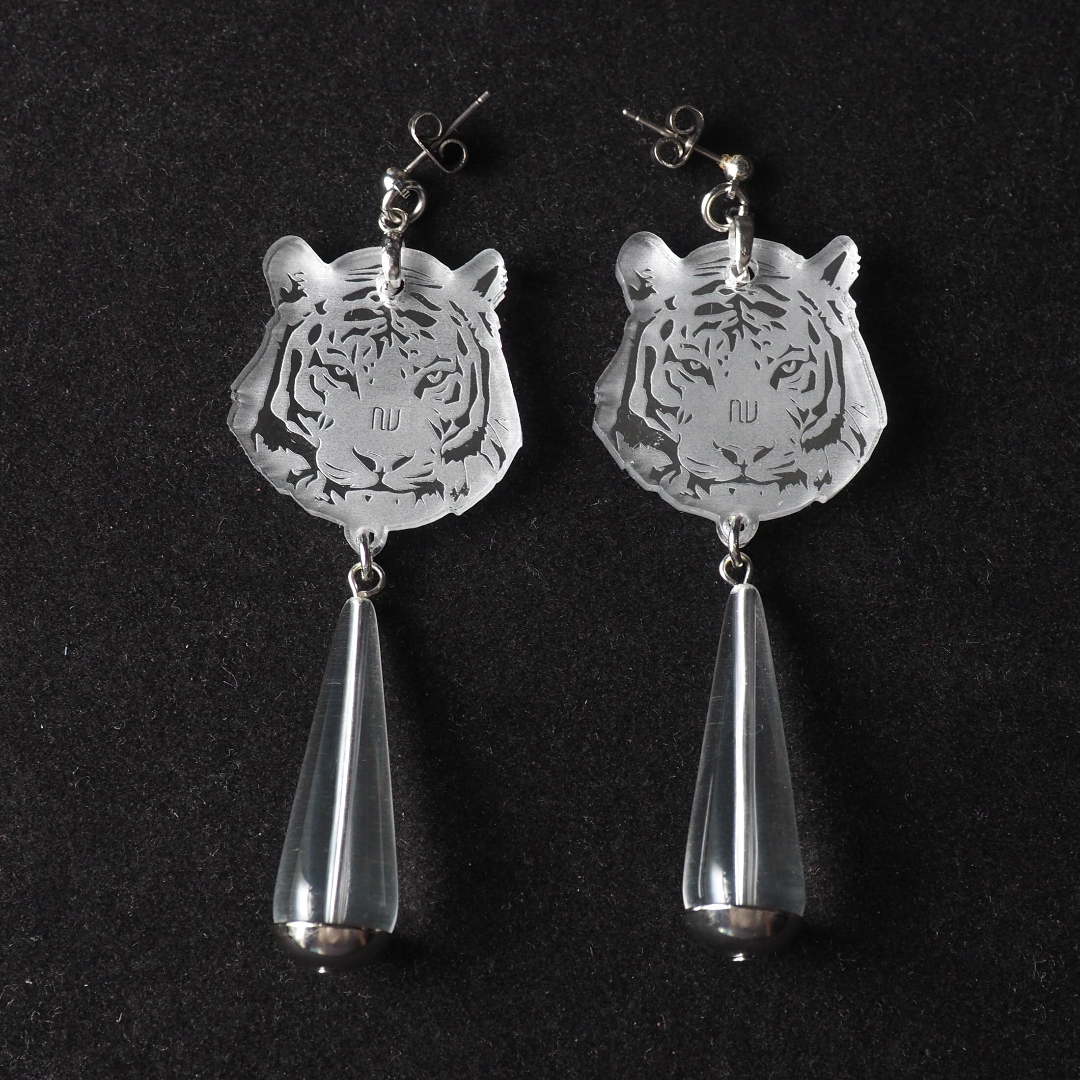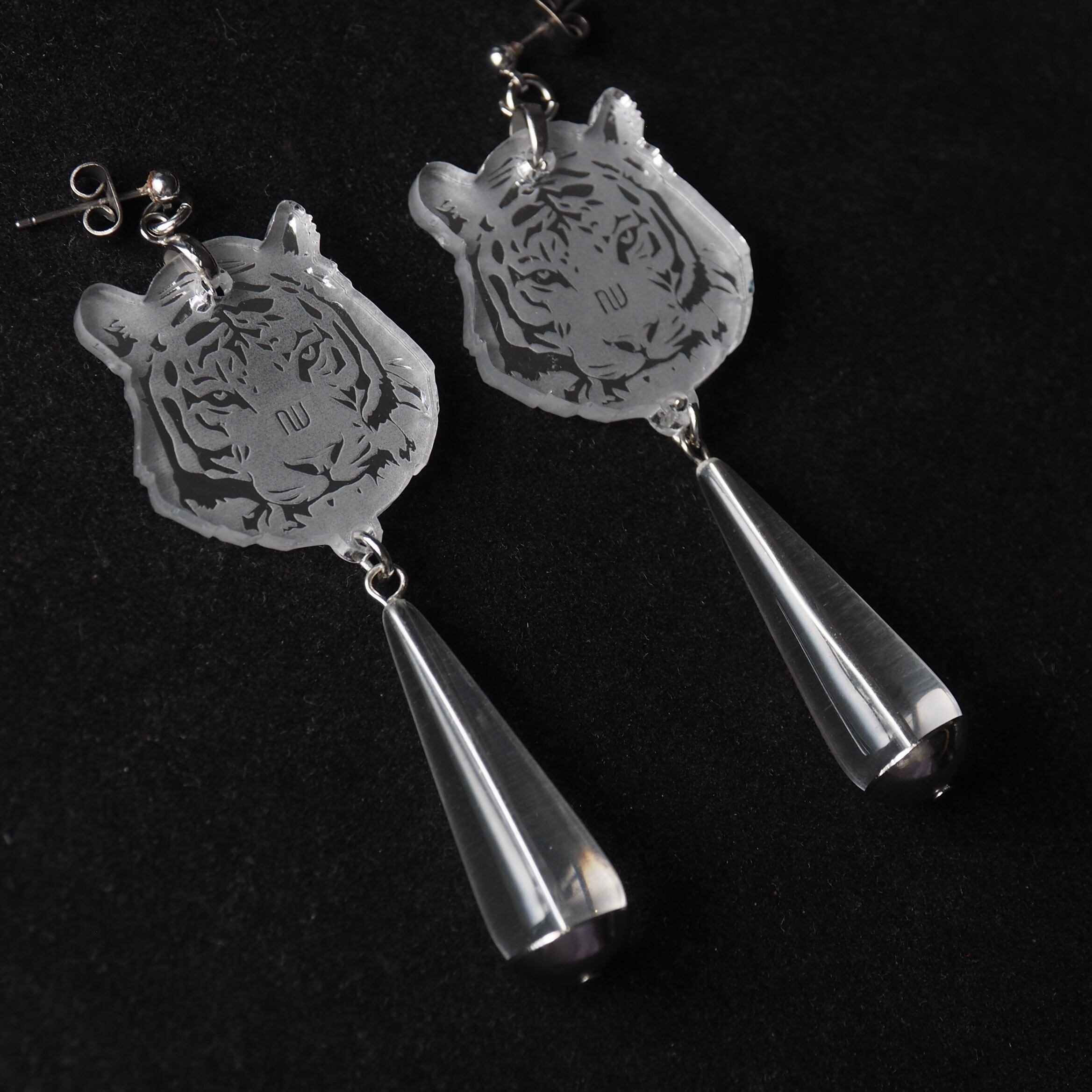すりガラスのような繊細で美しい質感のマットなアクリルを使用した、強さの中に上品な雰囲気のあるクリアタイガー。模様部がミラーになっており、光の屈折でキラッと光ります。