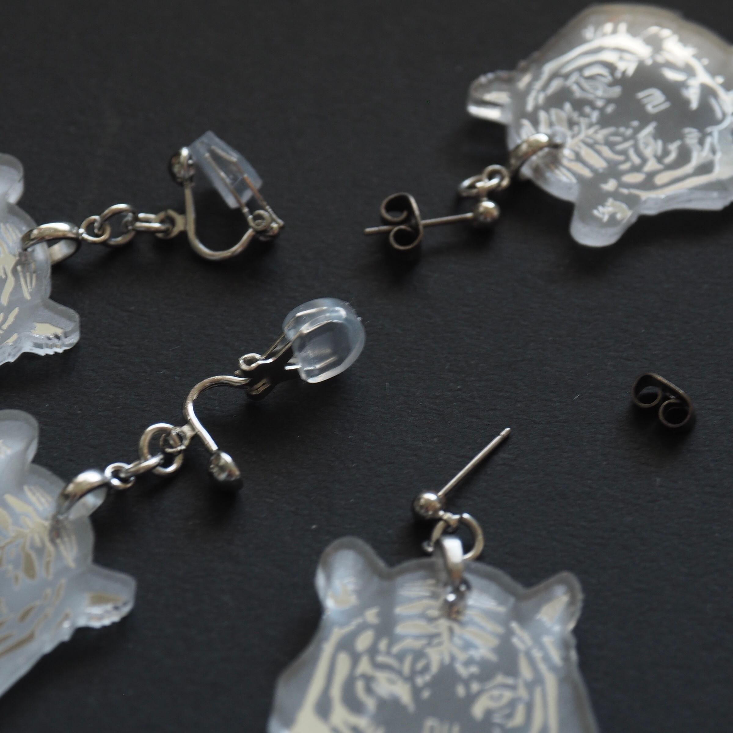 アクリル、真鍮、ゴム(イヤリング)、チタン(ピアス)