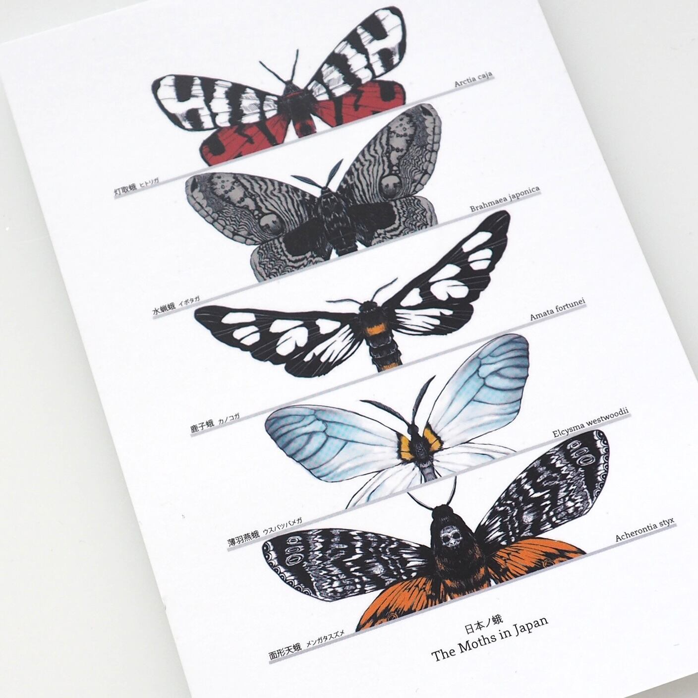 イボタガ、ウスバツバメガ、メンガタスズメ、ヒトリガ(画像順)よりお選びいただけます。