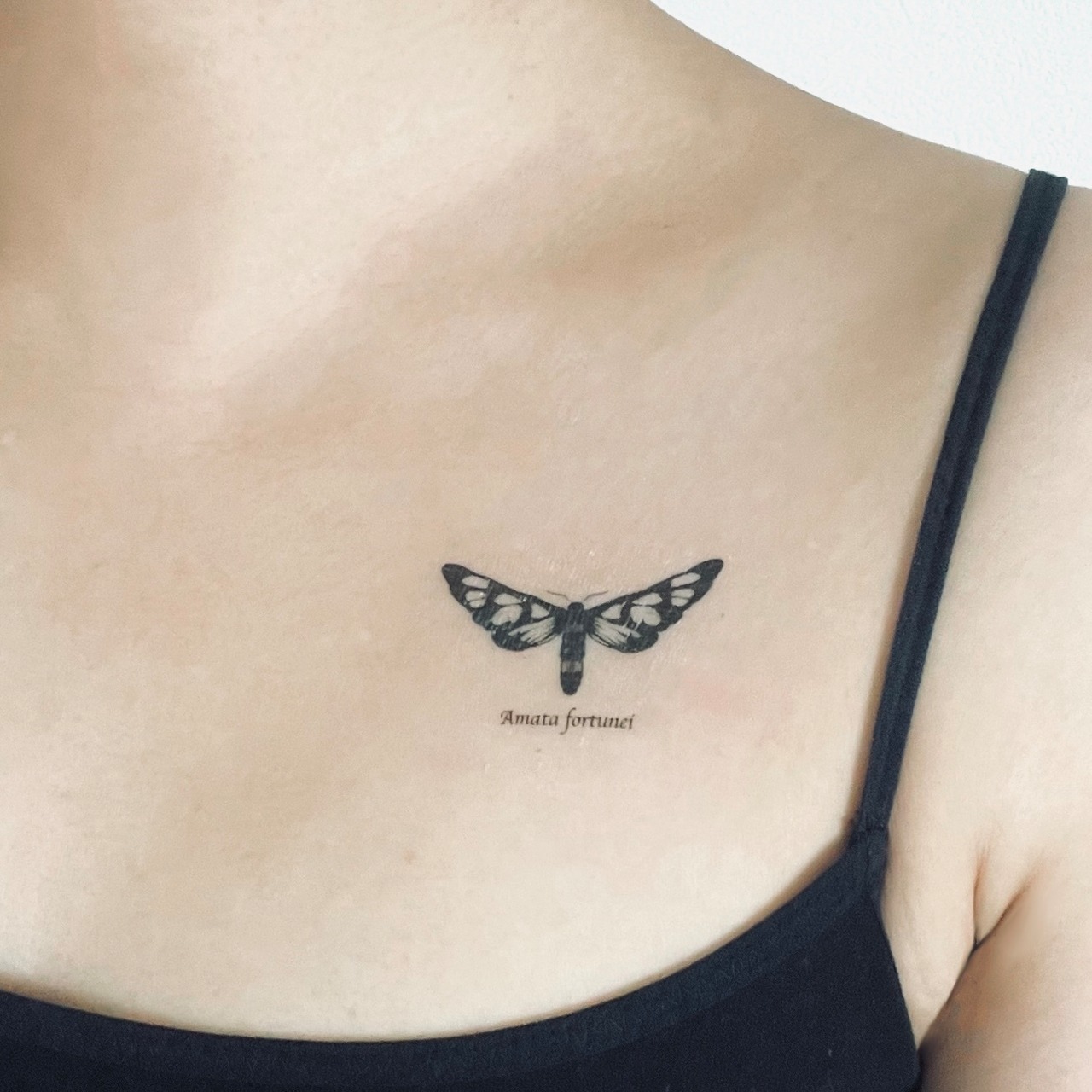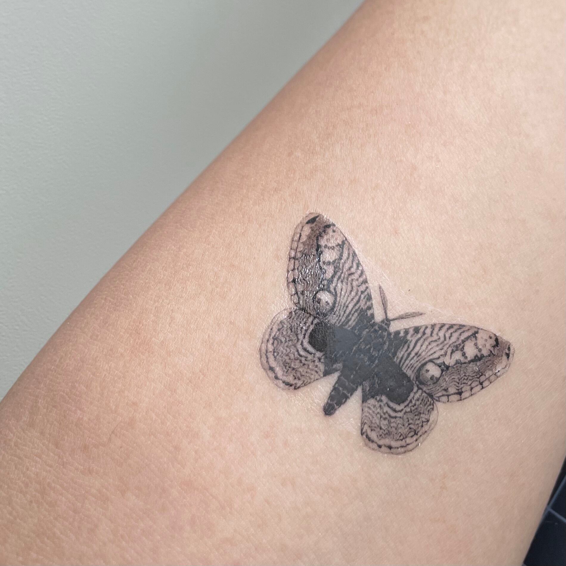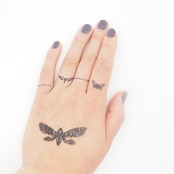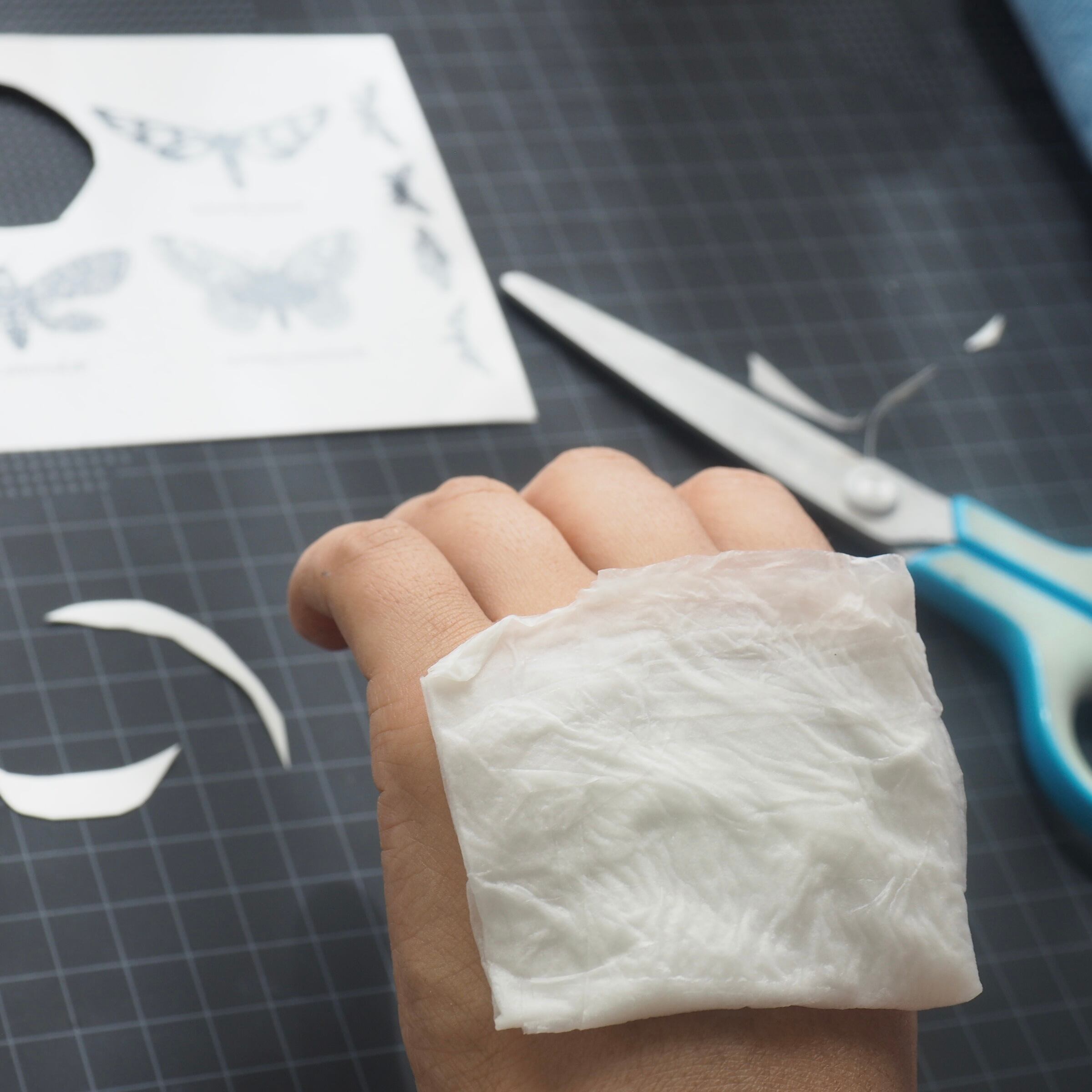 ① タトゥーシールを貼りつける箇所を拭き取り、余分な汚れや水分を落としてください。