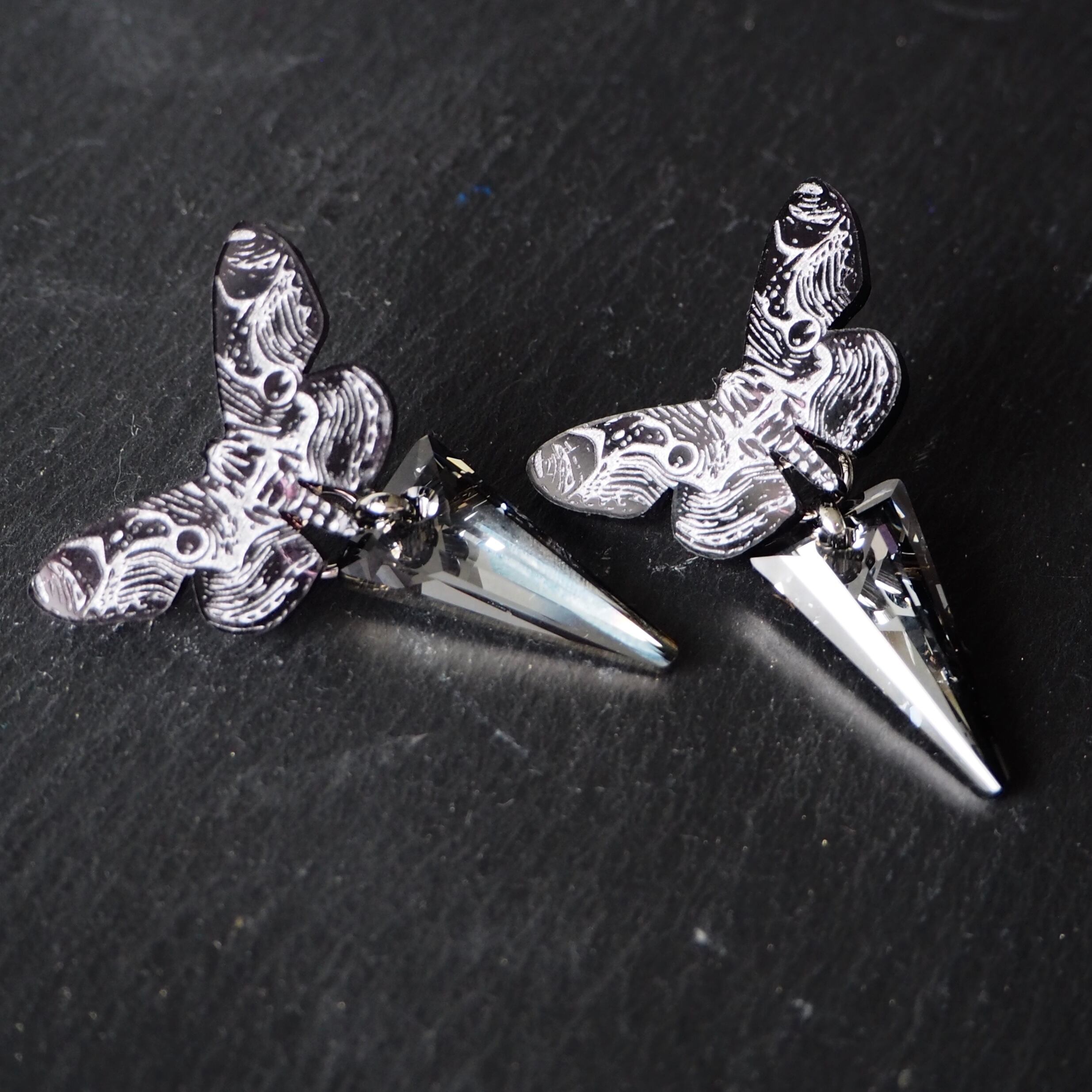 イボタガと呼ばれる蛾をモチーフにしたピアスの片耳です。