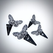 イボタガと呼ばれる蛾をモチーフにした、シックなアクリルピアス(イヤリング)の片耳です。