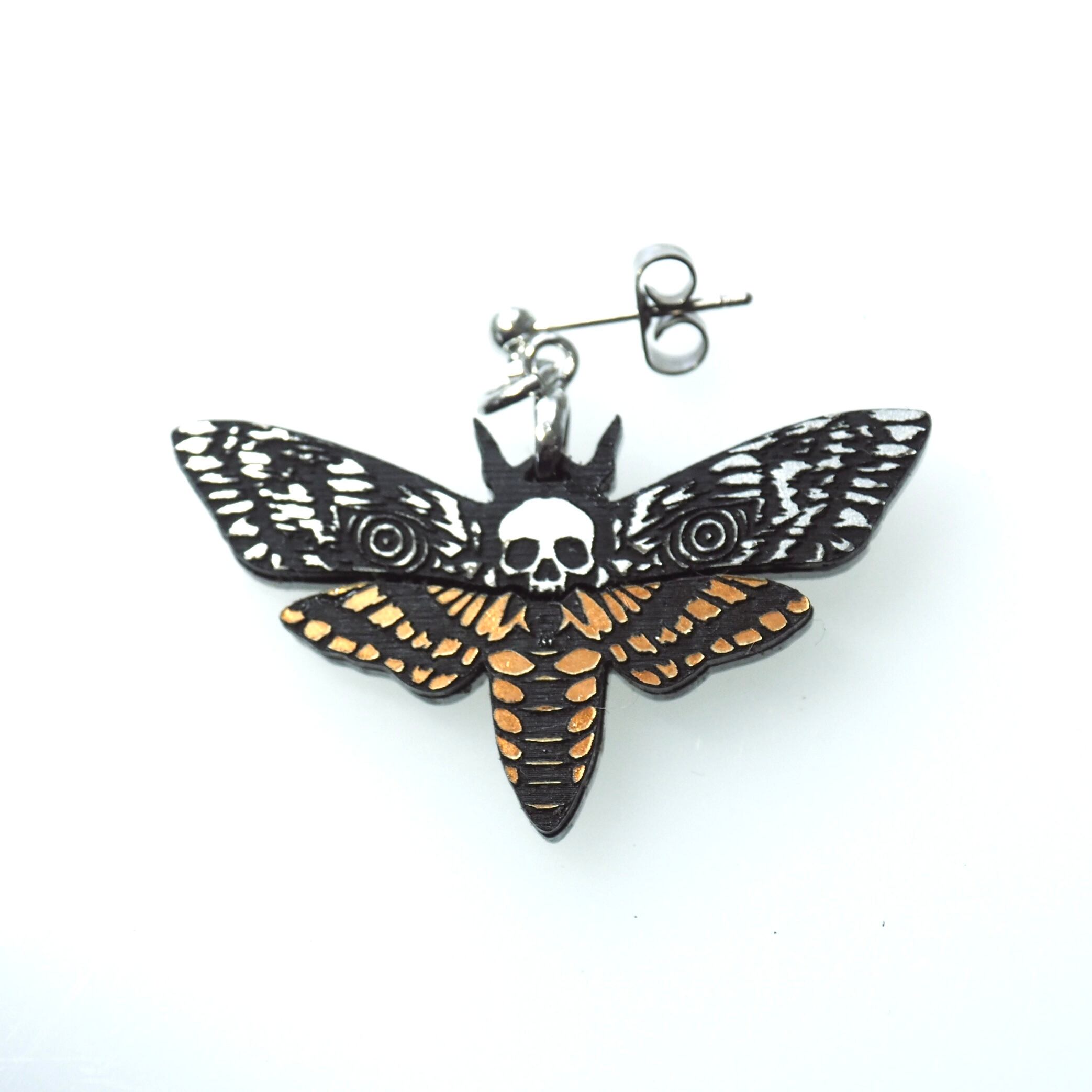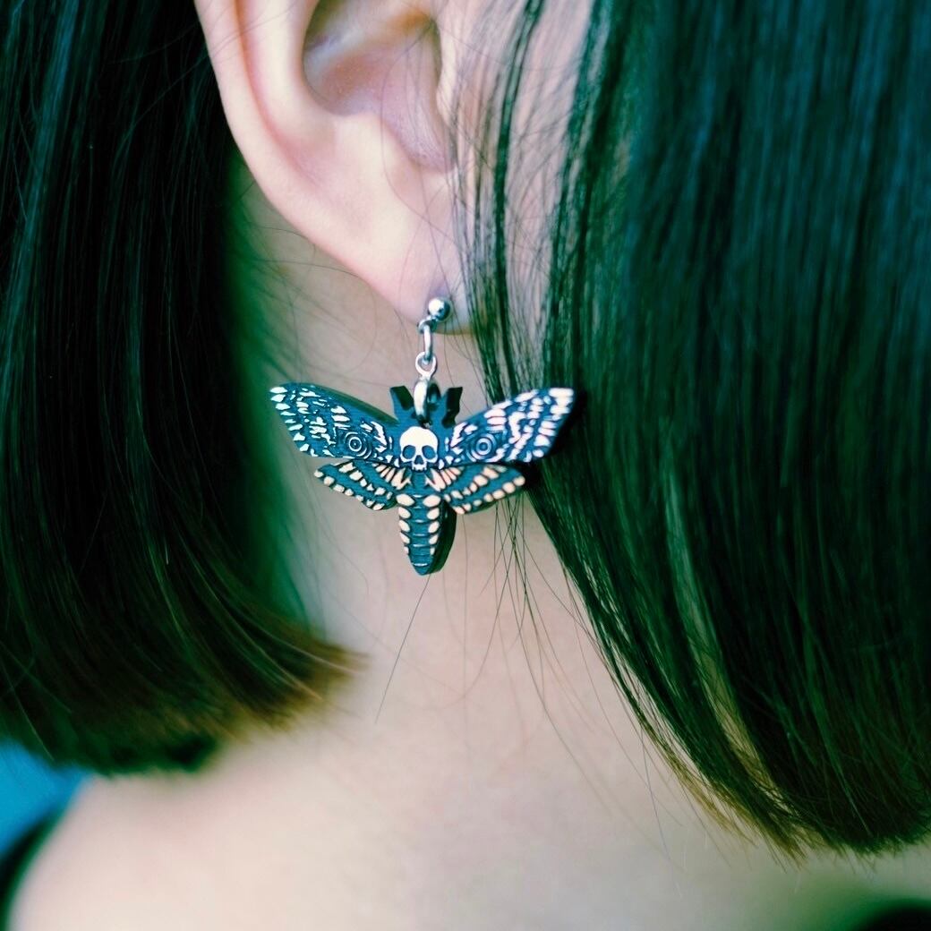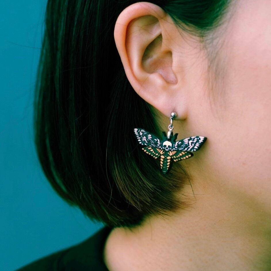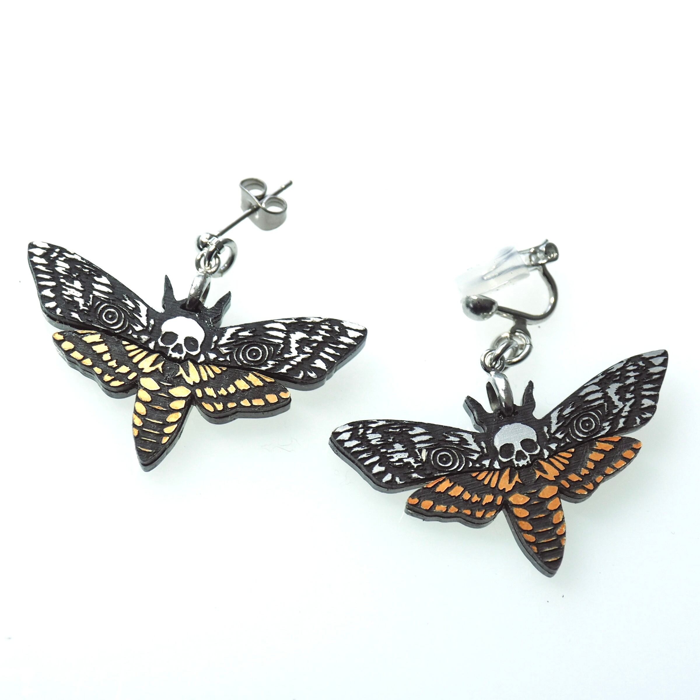 メンガタスズメという背中にドクロ模様のある蛾をモチーフにした、クールなピアスです。