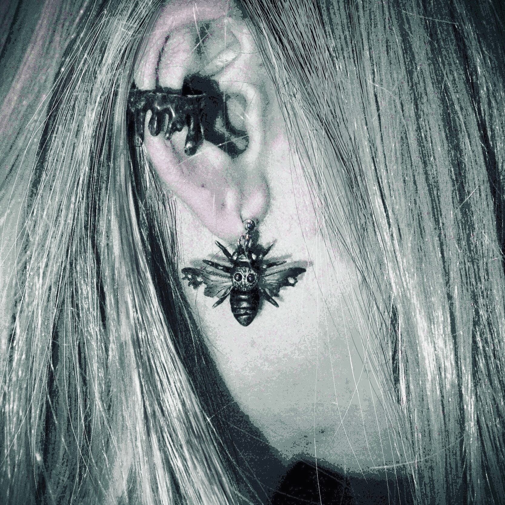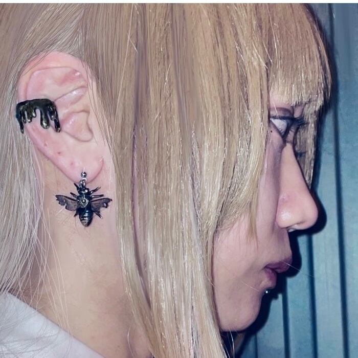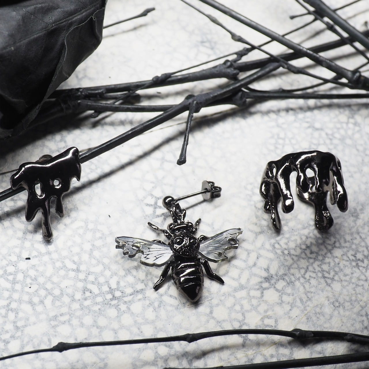 蜜蜂の黒いボディと破れた羽で狂気を表現しました。